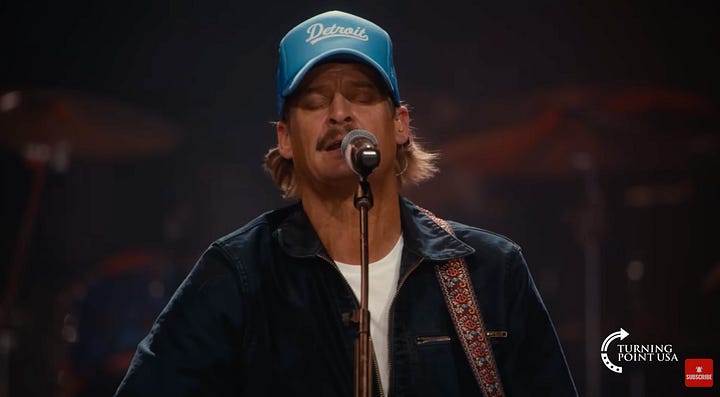 He’d sing in Spanish, as he always does, and that has brought about his popularity. Turning Point USA responded by hosting Kid Rock as counter-programming. Both singers’ lyrics would make my grandmothers turn off the TV, but both have their fans. Both singers’ lyrics can be hard to understand, even for a native language speaker.